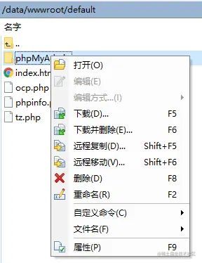 右键单击服务器上一个文件或文件夹,可以对云服务器进行多种操作。