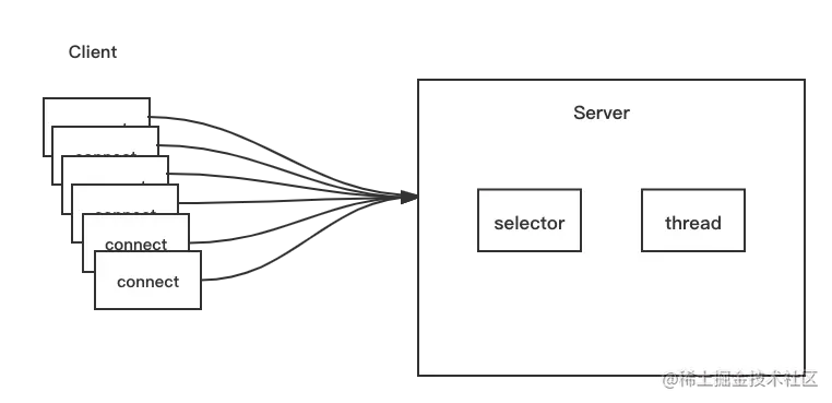 Selector组件用于轮询一个或多个NIO Channel的状态是否处于可读、可写。通过轮询的机制就可以管理多个Channel,也就是说可以管理多个网络连接