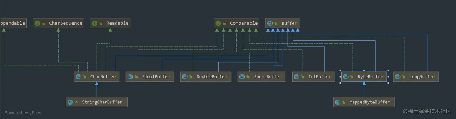 - allocateDirect(int capacity) 通过allocateDirect方法也可以快速实例化一个Buffer对象,和allocate很相似,这里区别的是allocateDirect创建的是基于堆外内存的对象。