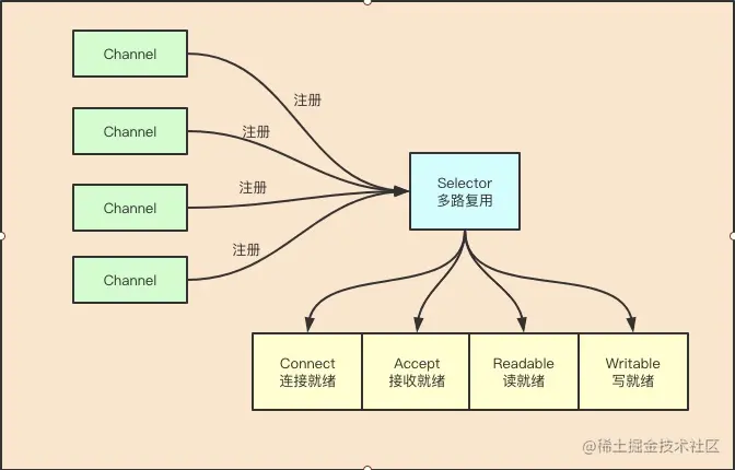 - 首先,需要将Channel注册到Selector上,这样Selector才知道需要管理哪些Channel