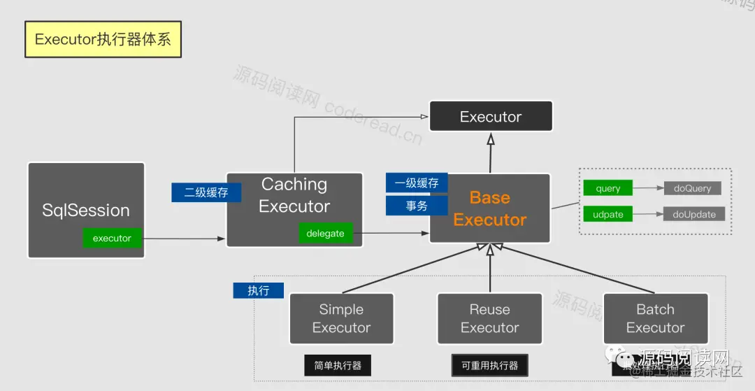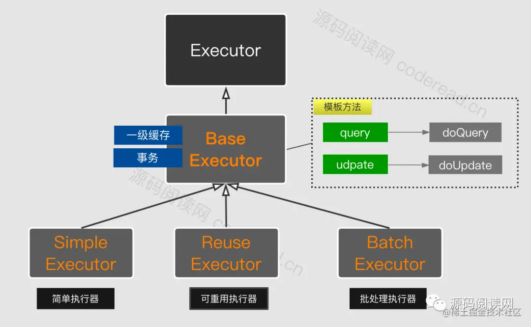 BaseExecutor(基础执行器)是一个抽象类。三种执行器都是继承自它,并实现它的 doQuery与doUpdate方法,用于具体的执行。