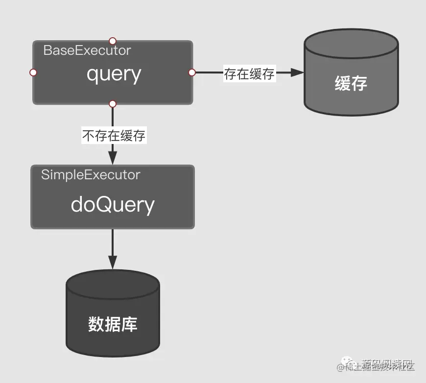 代码中delegate是一个简单执行器,它被CachingExecutor所装饰。当调用query方法时先检查有没有命中二级缓存,如果没有再交给delegate继续完成查询逻辑。