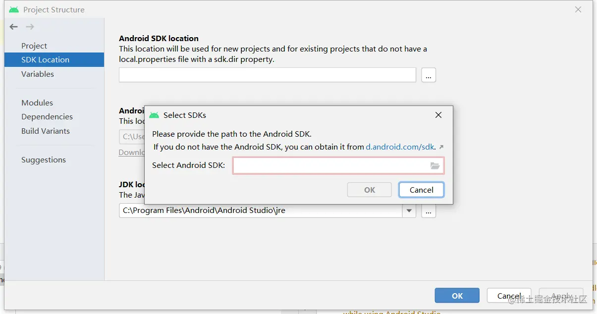 File->settings->Appearance&& Behaves->System Settings->Android SDK,下载需要的版本