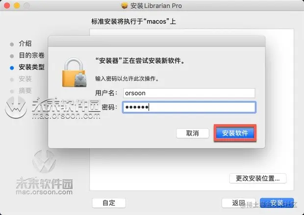 如果你的电脑设置了密码,输入密码后点击”安装软件“,如下图: