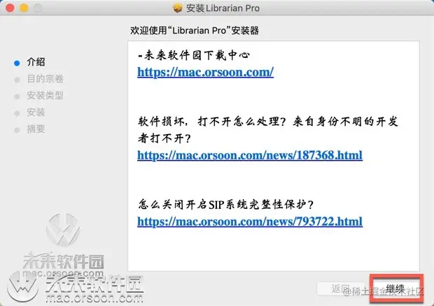 下载好Librarian Pro安装包后,双击安装包进行安装,弹出安装器后点击“继续”,如下图: