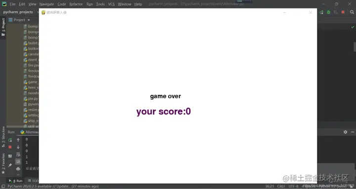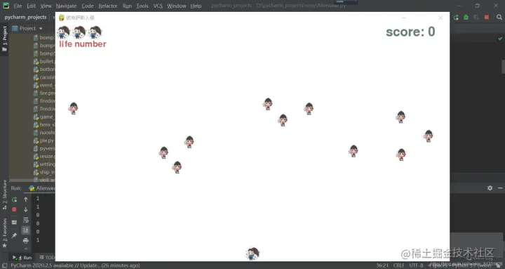 (飞机为迷你亚索,外星人为迷你小诺手,由于时间关系和图片素材较难寻找,仅仅做了简易版,没有贴上背景图片。由于篇幅原因,对于函数讲解较为简略,可以自行搜索相应函数的用法)
