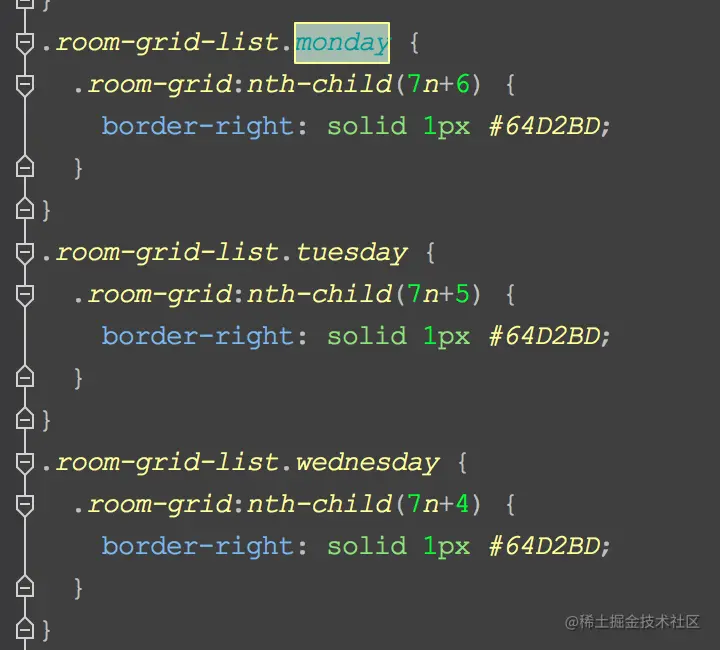 这样确实能完成产品的需要,但是本身这个项目就因为数据量过大,从而存在了大量的计算,所以我们要尽量的减负,而不是增负,在抓掉了N根头发之后,我想到了,可以用CSS3的选择器去解决这个问题.