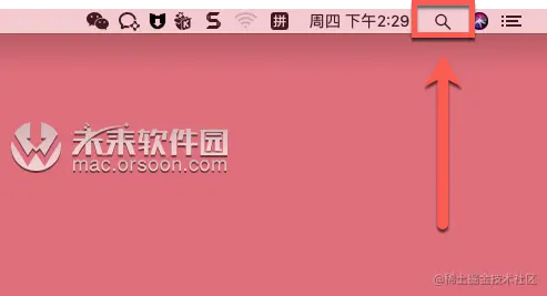 在菜单栏的右上角,点击搜索图标,或者使用快捷键 Command+空格键 即可调出 Spotlight 搜索,它可以快速地显示软件、文件以及网页等各种结果。