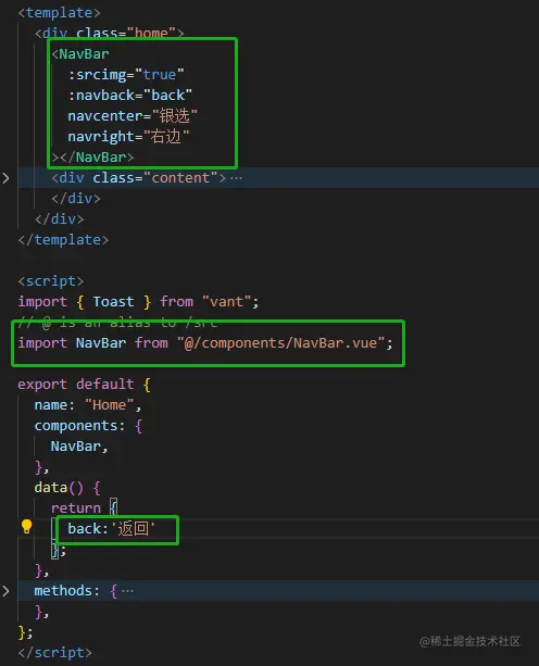 1.2 首先先将子组件通过improt给导入到父组件页面里,然后,在components中注册一下,最后就能直接使用,传值给子组件了。