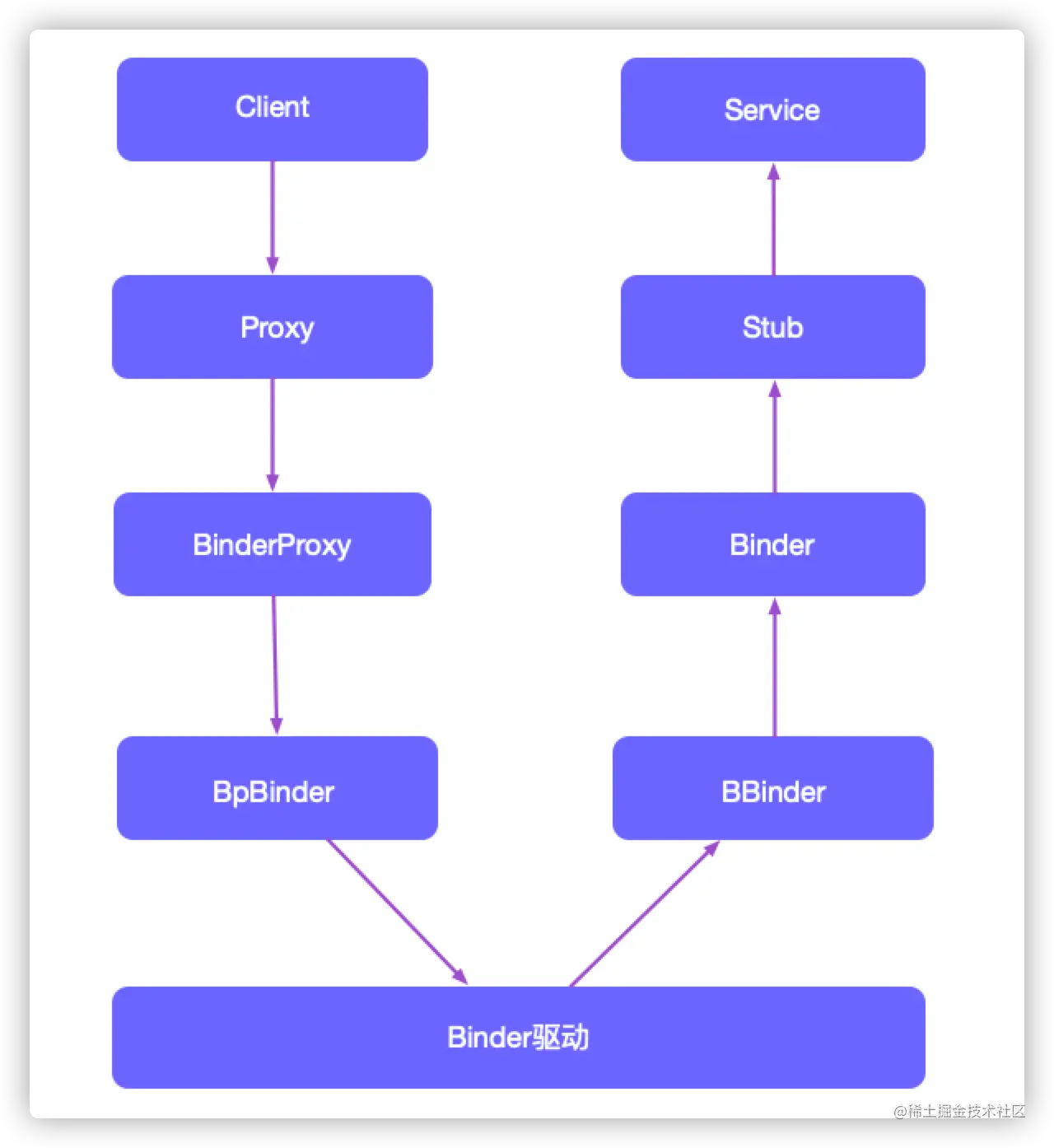 Binder 是个很大的东西。其中很多部分还没有看懂。以后还是需要在继续看一下。争取彻底搞懂其中每个部分的工作流程。上文的分析,完全是通过数据传递的过程分析。其实还有数据的校验,MMAP 的过程。和Binder驱动交互的过程。等很多细节。