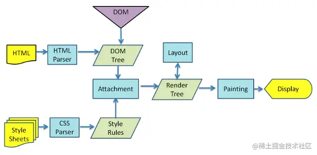 - 遇到JavaScript会通过DOM API和CSSDOM API来操作DOM TREE和CSS RULE TREE,解析完成后