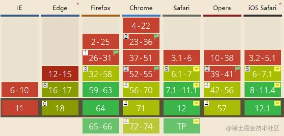 除了已经被淘汰的IE浏览器以外,其他浏览器目前都支持