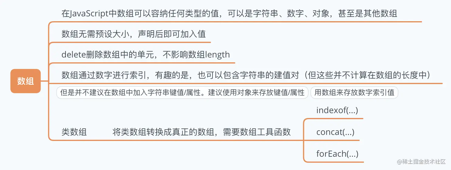 JavaScript 中的数组是通过数字索引的一组任意类型的值。字符串和数组类似,但是它们的 行为特征不同,在将字符作为数组来处理时需要特别小心。JavaScript 中的数字包括“整 数”和“浮点型”。