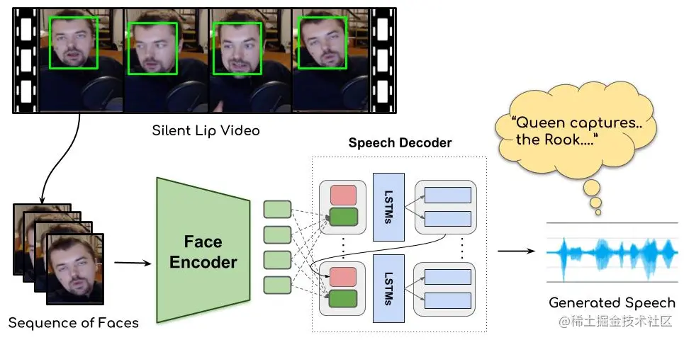 算法原理就是根据面部特征,对唇部进行编码,再使用 LSTM 进行音频合成。