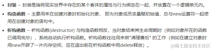 - 析构函数(destructor) 与构造函数相反,当对象结束其生命周期时(例如对象所在的函数已调用完毕),系统自动执行析构函数。