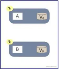 现在网络中有两个节点N1和N2,他们之间网络可以连通,N1中有一个应用程序A,和一个数据库V,N2也有一个应用程序B2和一个数据库V。现在,A和B是分布式系统的两个部分,V是分布式系统的两个子数据库。