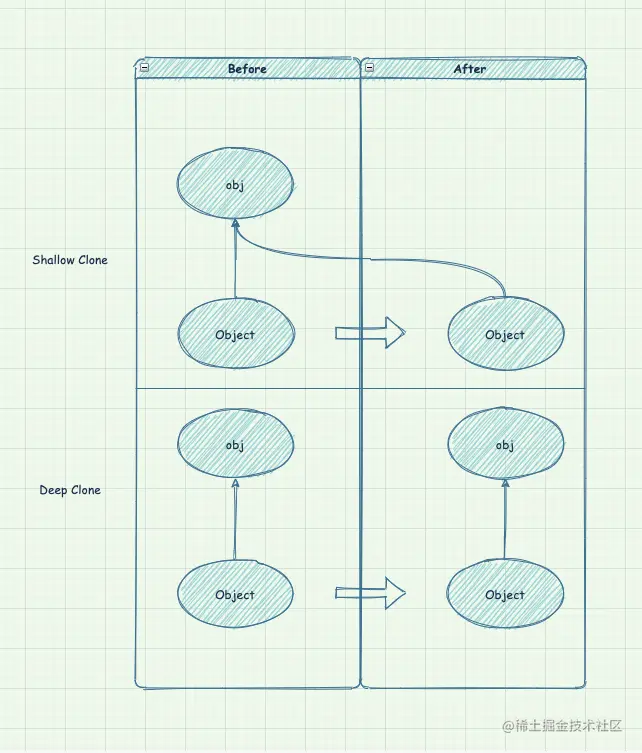 首先来说一下Object类是如何实现clone,它对这个对象一无所知,所以只能逐个域的进行拷贝。如果对象中的所有数据域都是数值或其他基本类型,拷贝这些域没有任何问题,但是如果对象中包含子对象的引用,拷贝域就会得到相同子对象的另一个引用,这样一来,原对象和克隆对象仍然会去共享一些信息。这种Object类默认实现的clone方法称为浅拷贝(Shallow Clone)。
