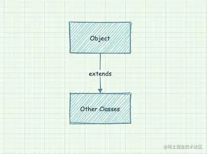 在 Java 中,只有基本数据类型不是对象,比如,数值,布尔和字符类型的值都不是对象。而其余的数据类型都是继承自一个名为Object的类,这个类是所有类的始祖,每个类都是由Object类扩展而来。
