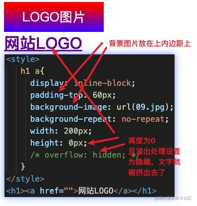 一般用在网站的logo图标上,logo图标一般使用h1标签进行包裹,同时为了seo的考虑,h1作为页面最重要的标签,里面最好放置位置内容来利于seo的优化,但是又不希望文字显示出来,这种情况下使用overflow来解决是非常适合的场景