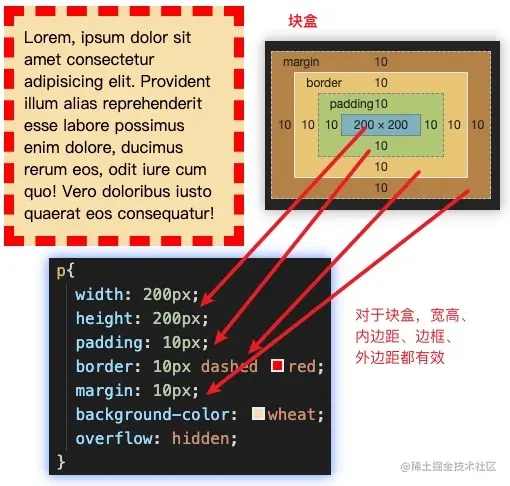 对于块盒水平会占据一整行,垂直高度会随着内容撑开,内容多高,盒子就会多高。当然这是在没有对盒子设置高度的情况下。 一旦设置了高度,那么盒子即要保证显示为具体设置的高度,同时又需要展示盒子内部所有的内容,如果内容过多,必将会在盒子外部显示。 对于溢出的这部分内容,可以通过overflow属性进行设置。