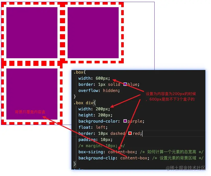这个属性值非常有用,一般会用在列表页面缩略图块需要固定大小的时候,可以设置这个属性,然后再任意调整内容,内边距,边框等尺寸都不会影响盒子所占据的空间。