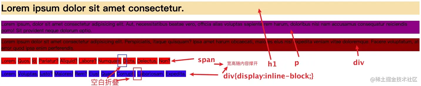 有空白折叠(当出现多个空格或换行符等的元素的时候,会合并为一个空格)