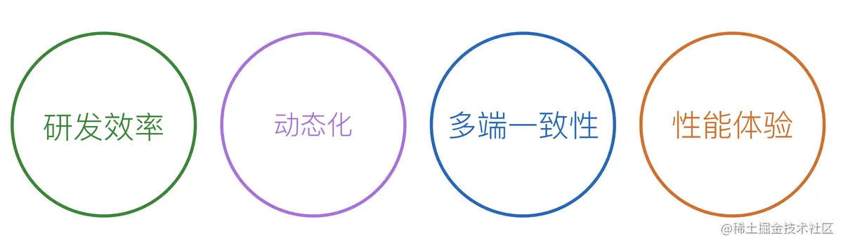 作为移动端的跨端技术方案,所关注无外乎以下这4个方面:研发效率、动态性、多端一致性、性能体验。