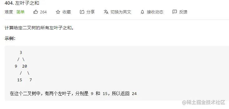 public int sumOfLeftLeaves(TreeNode root) {
