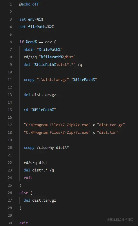 批处理文件负责复制压缩包到目标文件夹,在目标文件夹解压缩等操作。
