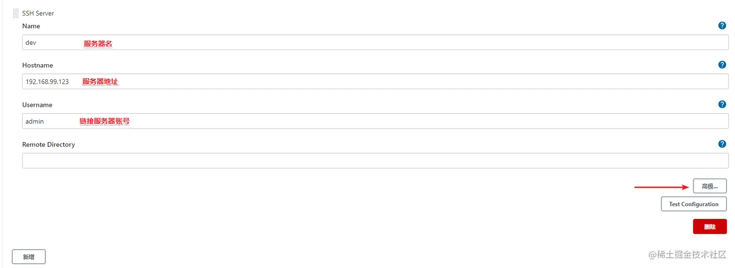 比如需要发布到开发环境的远程机,添加以下信息。