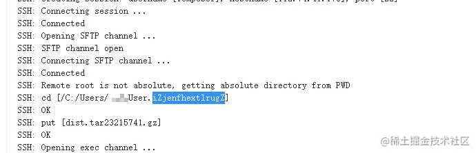 当配置的目标机器为windows系统时,文件会被送到配置远程链接的账户所属用户文件夹下。在传输完毕后,预留的 superDeploy.bat 文件会被执行。