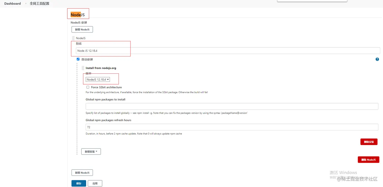 在系统管理-全局工具配置中,找到 NodeJS。