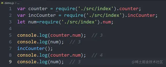输入的是被输出的值的拷贝,也就是说,一旦输出一个值,模块内部的变化就是影响不到该值(仅仅是普通的值,如果是引用类型的值,还是会受影响的)