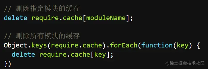 所有缓存的模块都保存在require.cache中,如果想要删除模块的缓存,可以用下面的写法