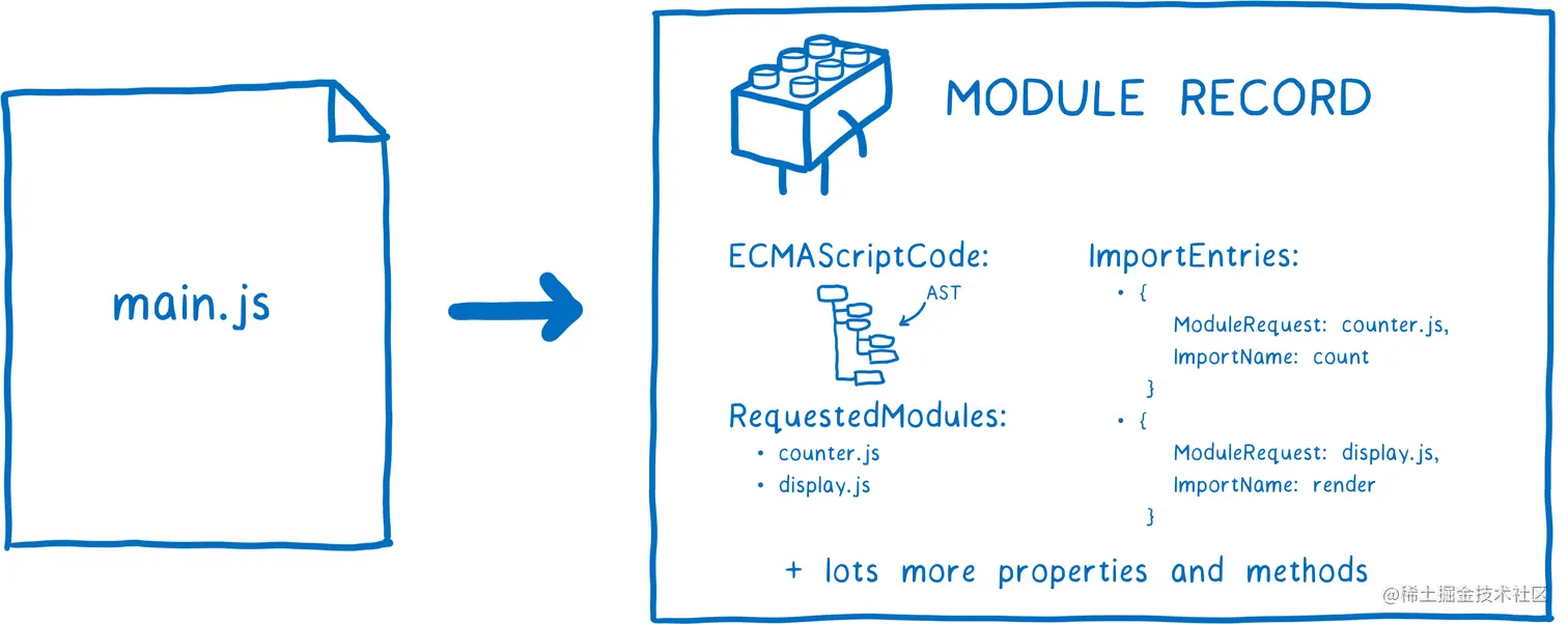 - 构造(Construction):找到文件下载,并解析成模块记录(module record)