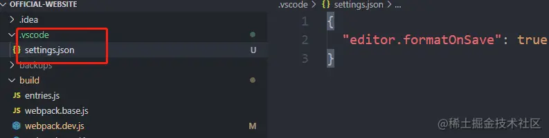 此时,项目根目录会生成新文件.vscode->settings.json