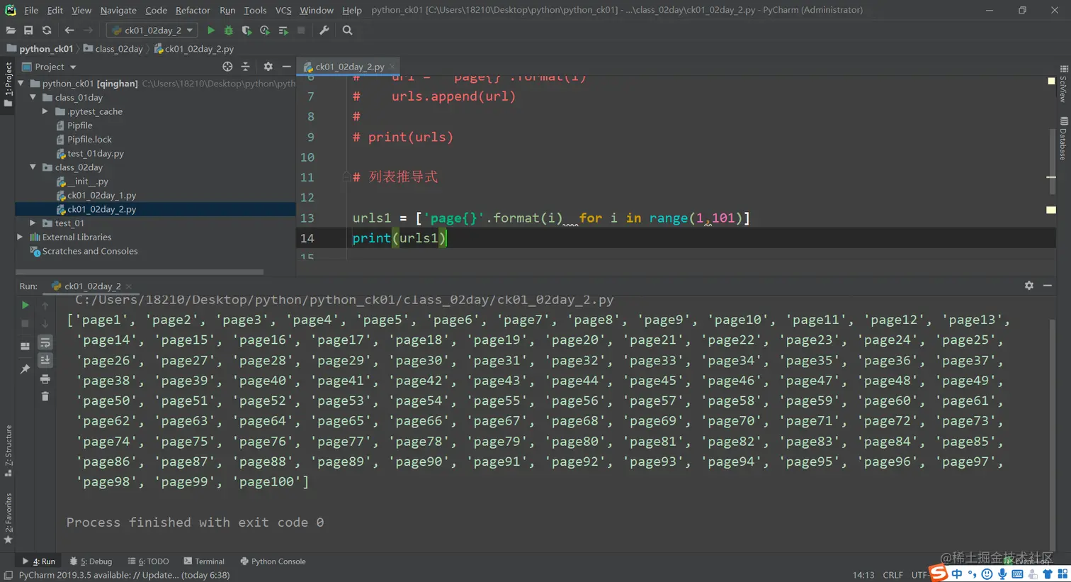 如果用列表推导式生成这个 page1,到 100 页。代码就修改成这样: