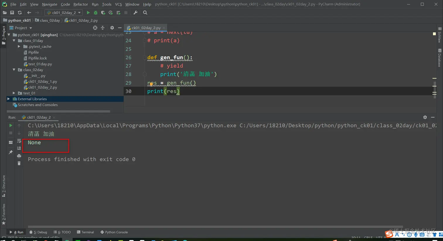函数没有写return,调用函数,它里面,代码没有执行,但是有返回结果,返回的结果是: