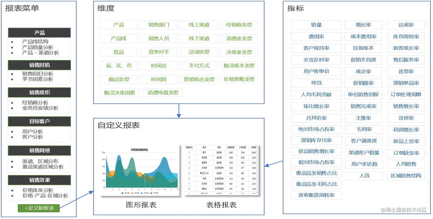 与此同时,每一次的大促之后都需要多维度的分析与评估帮助企业对经营了然于胸,强大灵活的自定义报表组件将进一步“解放”运营,两个场景的有力结合实现营销业务事前千人千面,事中持续监控,事后数据反哺,有据可依,明确以数据为基础来驱动整个营销过程,一切围绕着人的要素来设计活动流程,以“大数据”实现营销闭环。
