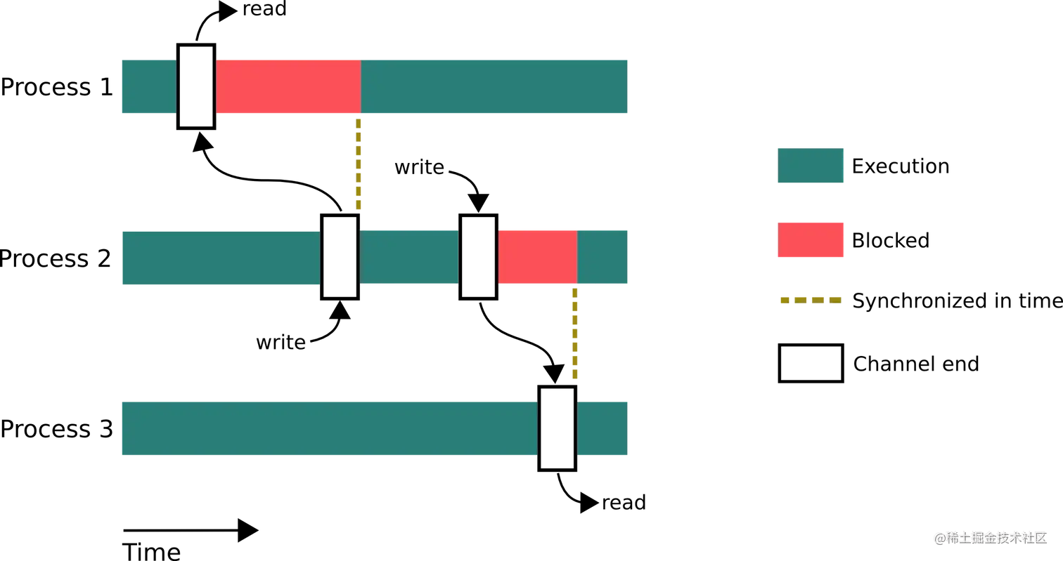 Process1读取channel因没有消息阻塞,直到Process2向该channel添加消息