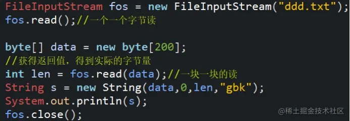 读的方式可以是一个一个字节读,也可以是一块一块读