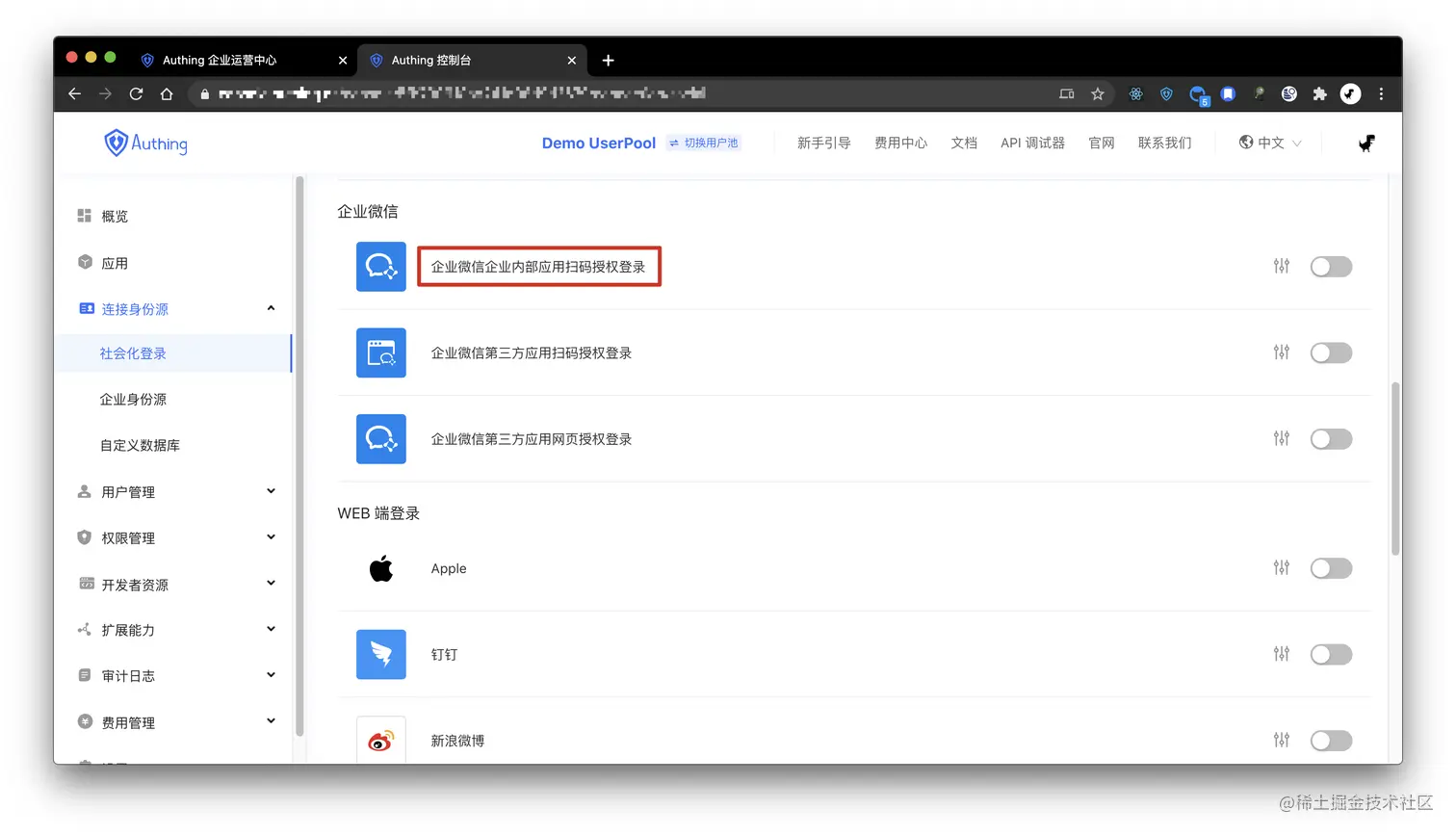 Authing 将近 20 种社会化登录方式,国内常见的如微信、GitHub、支付宝、企业微信全部支持,配置一下即可: