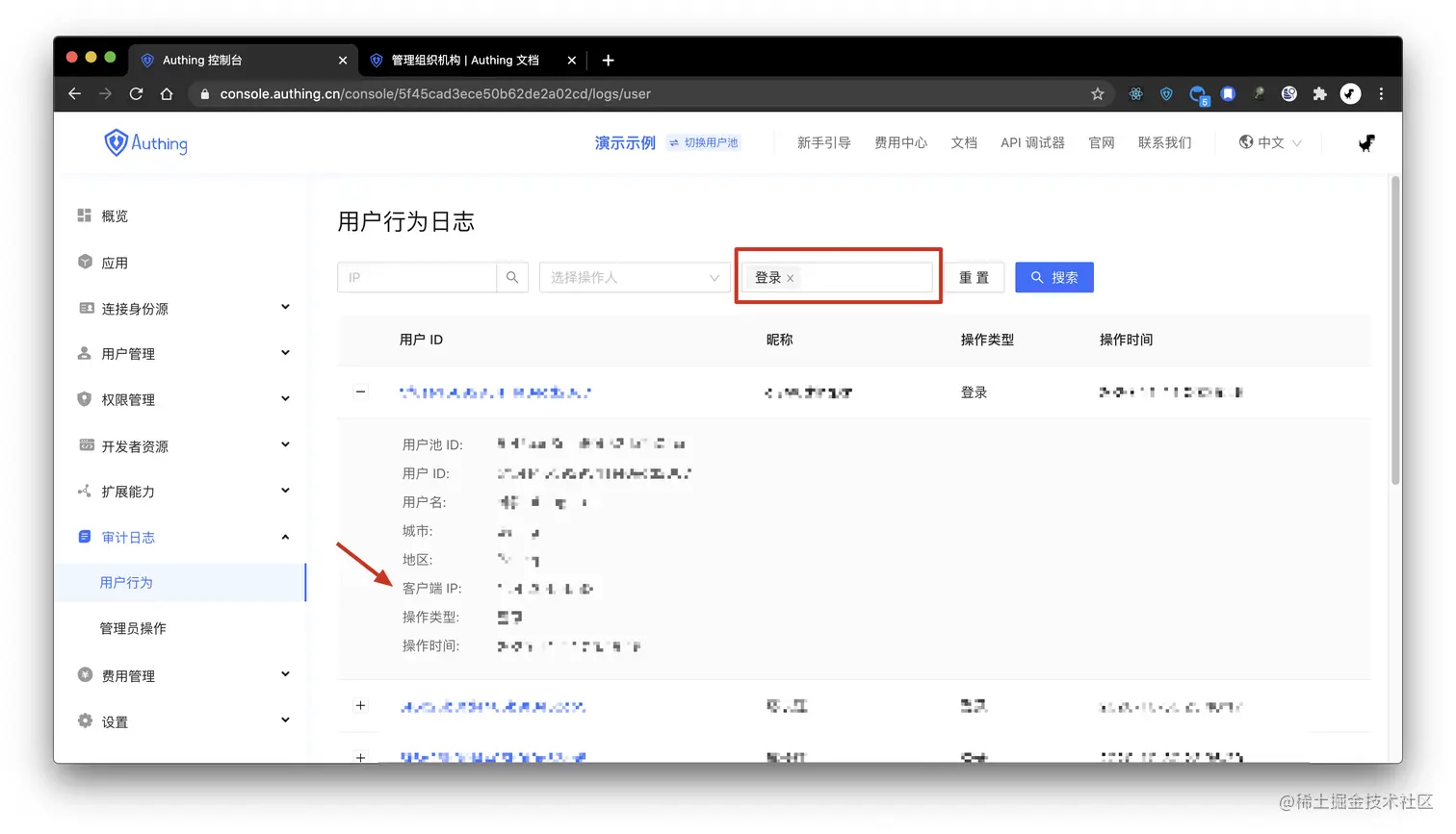 这也是 Authing 内置的功能,能够看到谁在什么地方登录了应用:
