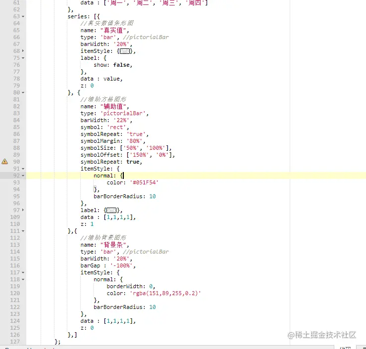 众所周知Echarts的配置项非常之多,使用麻烦且学习成本高,而且设计稿中的矩形不光有repeat还有递增的效果,这可咋办呢?