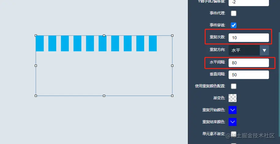 最后在repeatNode上配置repeat的次数和间距就好啦
