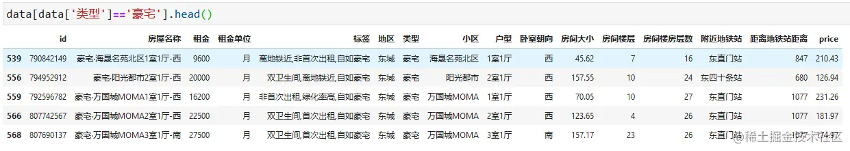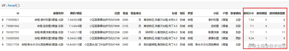 查看以上数据,其实房屋名称、面积/楼层及位置信息可以继续进行细化成更小的元数据供后续分析使用,对此我们来一一处理。