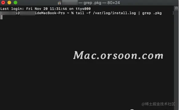 tail -f /var/log/install.log | grep .pkg