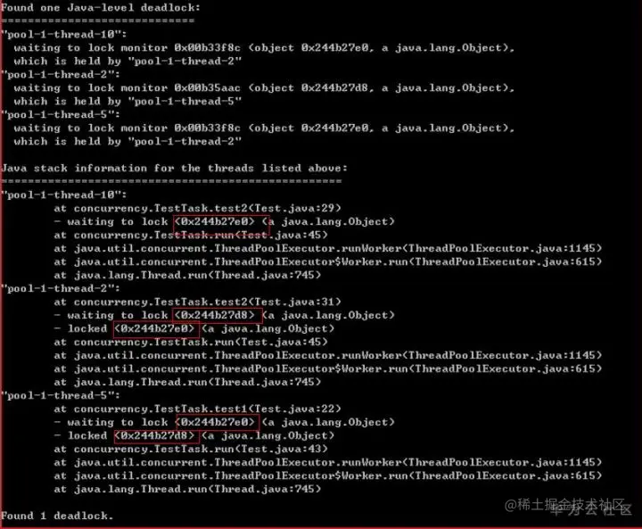 - 查看死锁例子如下图,找到wait的lock和已被锁的lock