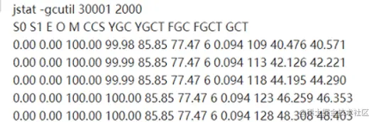 Q: jstat -gcutil {pid} 2000 可以每隔2秒,对pid进程打印内存使用统计信息。 gcutil的输出如下
