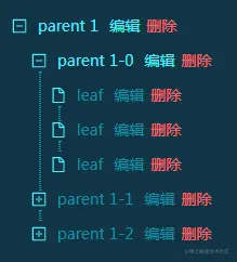 一般的树形组件,也许会带上例如编辑、删除等自定义功能。例如下图: